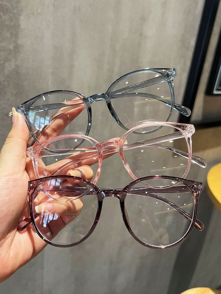 Thiết kế thời trang: Gọng tròn to bản, trong suốt ánh hồng pastel – mang phong cách trẻ trung, hiện đại, cực hợp với phong cách Hàn Quốc.